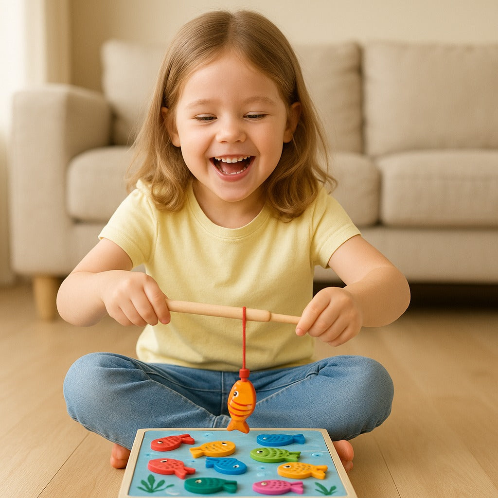 Brinquedo de Pescaria Magnética Montessori de Madeira 🎣🧩